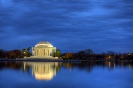 jefferson, memorial, sunrise, clouds, washington dc, reflection, tidal basin, trees,