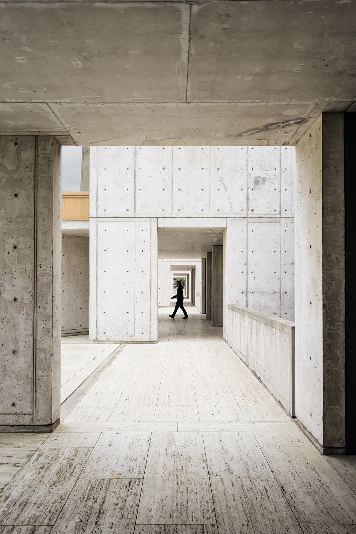 Salk Institute, La Jolla, San Diego, california, west coast, so cal, biological studies, scientific research, architecture, must see, visit, travel, hallway, orange tree,